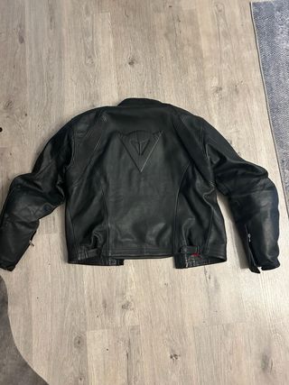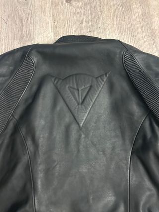 Chaqueta de cuero para moto de la marca Dainese. Diseño clásico y elegante.talla L ..(entre 1.70 y 1,80) y entre 78kgw y 88kgw)) con espaldera , protecciones espalda , codos y hombros - Material: Piel. - Color: Negro. - Logo Dainese en relieve en la espalda y pecho ,