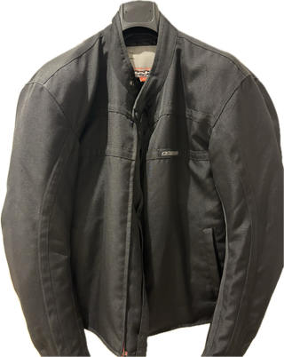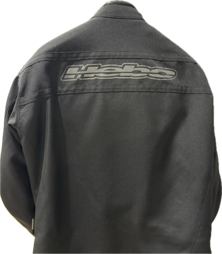 Chaqueta de moto de cordura en color negro. Diseño clásico y funcional. - Cuello alto con cierre de botón. - Cremallera frontal. - Bolsillos laterales con cremallera. - Detalle de logo en el pecho. Chaqueta muy confortable y resistente a la abrasión. Incluye protecciones extraíbles.