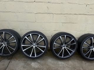 Juego de 4 llantas de 22 pulgadas. Se venden 4 ruedas completas de 22 pulgadas, medidas 295/30 R22 Montadas en Audi Q7, validas también para Volkswagen Touareg ,Porche etc. Las traseras tienen las gomas al 90% de vida y las llantas tienen los arañazos típicos del uso. Las delanteras, una esta bien con vida útil de goma de 85%, la otra tuvo un llantazo y hay que cambiar la goma y reparar la llanta que tiene una rajita(precio de valoración de reparación de la llanta 50€). - Diseño deportivo y elegante. - Acabado plateado pulido. - Incluye tapas centrales con logo.
