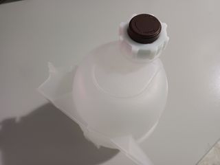 Depósito de anticongelante para Dacia Logan del año 2009. Pieza de plástico blanco con tapón marrón, SIN SENSOR. - Material: Plástico. - Color: Blanco. - Tapón: Marrón.