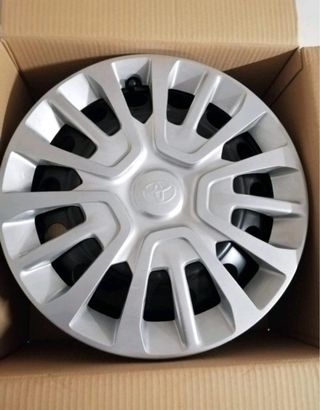 Juego de 4 tapacubos plateados para Toyota Proace City. - Diseño moderno y deportivo. - Fabricados en plástico ABS resistente. - Logo original de Toyota en el centro. - Nuevos a estrenar, quitados recién comprada la furgoneta.