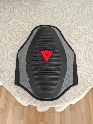 Espaldera Dainese para moto, diseñada para ofrecer protección. - Diseño ergonómico. - Materiales resistentes. - Logo Dainese en rojo.