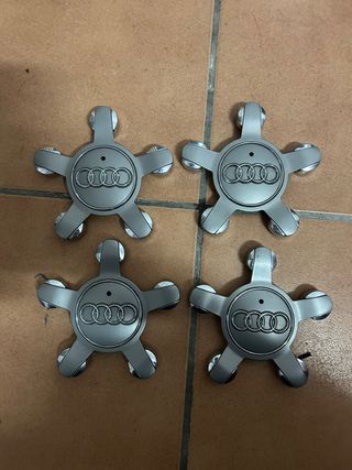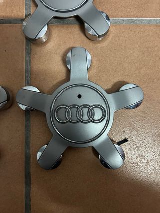 Juego de 4 tapabujes centrales para llantas Audi. Diseño plateado con el logo de la marca. - Compatibles con llantas Audi. - Acabado metálico. - Logo de Audi grabado.