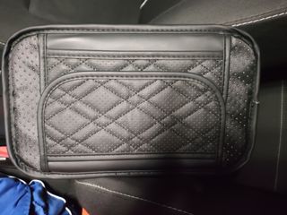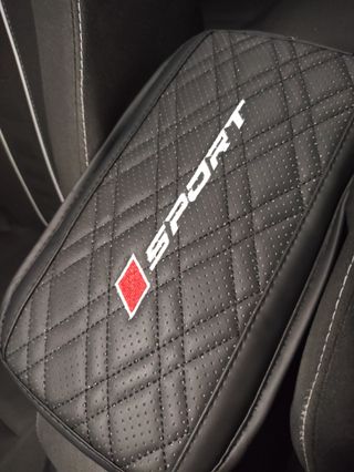 Funda apoyabrazos zona central con diseño deportivo. - Material: Polipiel negra acolchada. - Diseño: Cuadros con microperforaciones. - Detalle: Logo Sport bordado en blanco y rombo rojo. - Modelo universal, apto para todos los vehiculos actual del mercado. - Ofrece un equipamiento moderno y cómodo. - Nuevo, comprado en AMZ.
