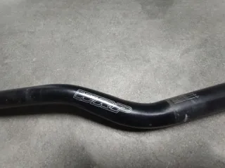 Manillar de bicicleta para enduro, de color negro. Presenta un diseño curvo y robusto. - Logo de la marca WRP grabado. - Marcas de ajuste en el centro.