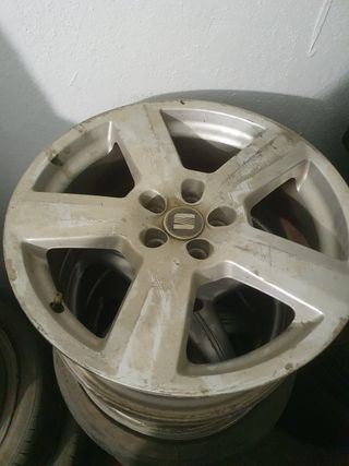 Juego de llantas de aleación de 17 pulgadas. Ai una doblada las 3 bien la reparación cuesta entre 60€ - Diseño de 5 radios. - Logo de Seat en el centro. - Incluye válvula.