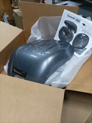 Tapa original para Top Case de Kawasaki GTR1400. Se encuentra a estrenar, en perfecto estado. - Color negro brillante. - Logo Kawasaki visible.