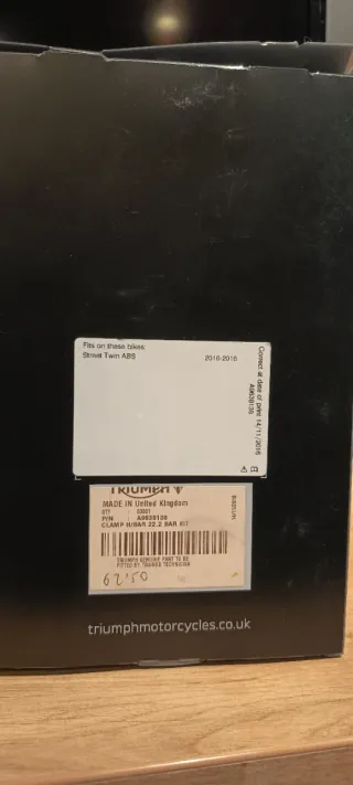 Kit de abrazadera para manillar de la marca Triumph. Diseñado en color negro con detalles plateados. - Logo de Triumph grabado. - Material: Metal.