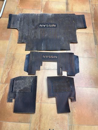 NO SE VEDE SUELTO Alfombrillas, esterillas de goma para Nissan Patrol originales, FALTAN LAS DOS DELANTERAS k160 k260 - Fabricadas en goma resistente. - Diseño con líneas verticales. - Logo de Nissan integrado.