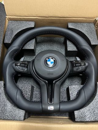 ENVIO GRATIS!!!! Volante deportivo para BMW E90, parte del paquete M. - Diseño en cuero perforado. - Costuras en contraste azul. - Logo M en la parte inferior.