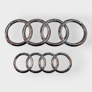 Emblema delantero y trasero de Audi en perfecto estado. Valido para varios modelos. Delantera 273mm Trasera 192mm.