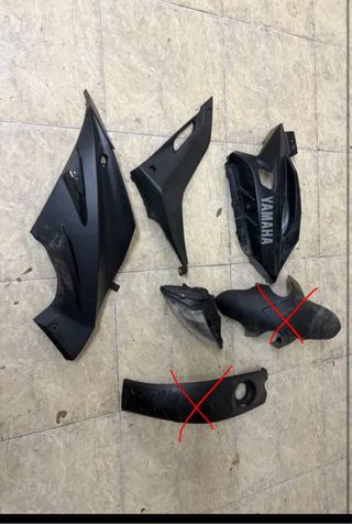Piezas de despiece para Yamaha YZF R125. (SOLO TENGO ESTAS NO PREGUNTAD POR MÁS PIEZAS) Vendo estas partes de mi yamaha yzf 2018 son validas para la version anterior tambien. faro 30€ tapa lateral (abajo en foto) 30€ tapa con logo yamaha 30€ tapa que va debajo del asiento 30€ Son piezas originales