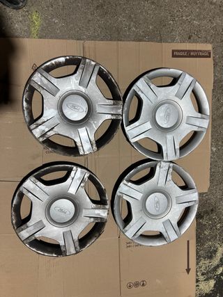 Juego de 4 tapacubos originales Ford de 14 pulgadas. - Diseño de 5 radios. - Logo de Ford en el centro. - Color plateado.