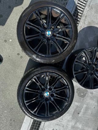 Juego de 4 llantas negras para BMW. Pack M Una para reparar el resto bien Con dos neumaticos nuevos unos 2/3 mil km - Acabado negro brillante. - Logo BMW en el centro. - Compatibles con varios modelos BMW.
