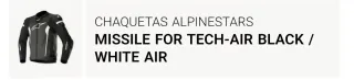 Chaqueta de cuero para moto de la marca Alpinestars. Diseño deportivo y protector. Precio algo negociable al estar nueva. - Material: Cuero. - Color: Negro con detalles blancos. - Cierre frontal con cremallera. - Logos de la marca Alpinestars. - Paneles perforados para ventilación. - Talla 52 - Compatible con airbag (no incluye airbag) Si quereis mas fotos del producto os podeis poner en contacto conmigo por whatsapp 697934652
