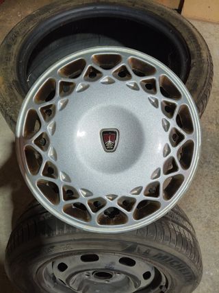 Se vende cuatro tapacubos plateado con diseño de rejilla para Rover 418 SLD. Presenta un emblema central con el logo de la marca. Regalo cuatro llantas y neumáticos del mismo vehículo. - Diseño de rejilla. - Color plateado. - Emblema central de la marca.