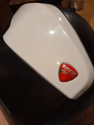 Maleta lateral derecha para moto Ducati Multistrada 2017 1200/950 con la pieza de color en color blanco y con el distintivo logo de Ducati. Muy buen estado SIN BOMBÍN No cambios ni mareantes