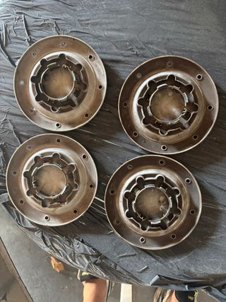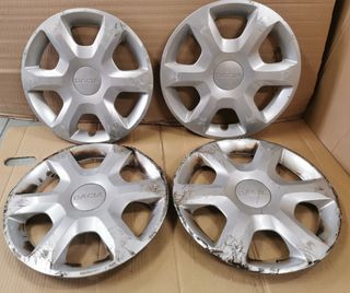 Juego de 4 Tapacubos para rueda de 15 pulgadas. Válido para Dacia Dokker, Logan y Sandero. Presentan algunos arañazos por el uso. Referencia 8200756961. Se venden juntos o separados. Precio del juego €35 Sueltos €10 cada uno Escríbeme antes de comprar para cambiar el precio y el peso en caso de llevarte solo 1