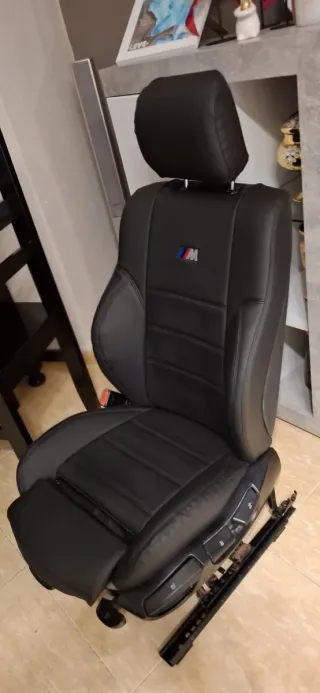 Fundas de asiento negras para BMW E46. Diseñadas para un ajuste perfecto y un estilo deportivo. - Material: Cuero sintético de alta calidad. - Color: Negro. - Logo: Emblema M bordado en los asientos delanteros.