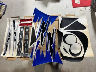 Set de adhesivos para Derbi GPR 50R en color azul, modelo de 1998. - Incluye varios diseños y logos de la marca. - Diseñados para la carrocería de la moto.