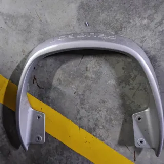Alerón trasero plateado para Peugeot Citystar. Fabricado en metal con el logo de Peugeot grabado. - Logo Peugeot grabado. - Acabado plateado.