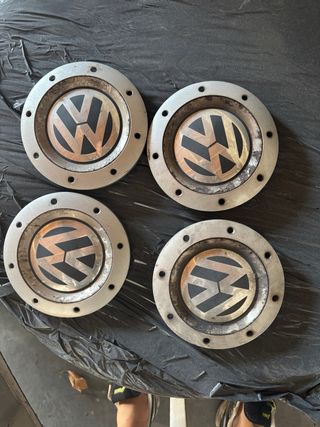 Set de 4 tapas de llanta para Volkswagen Golf V. Diseñadas para llantas de 16 pulgadas. Precio las 4 tapas - Logo de Volkswagen. - Diseño plateado con detalles en negro. - Montaje a presión