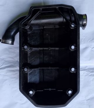 Tapa de cigüeñal para motocicleta BMW K75. Pieza de repuesto con el logo de BMW. - Color negro. - Diseño con líneas plateadas. - Incluye manguitos de conexión. Envío rápido y bien protegido
