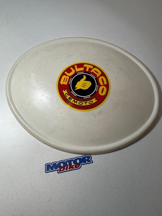 Porta números de Bultaco. Estaba en un antiguo taller, el plástico está un poco amarillento y con algunas ralladas de almacenaje - Diseño clásico con logo. - Fabricado en plástico blanco.