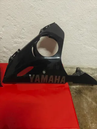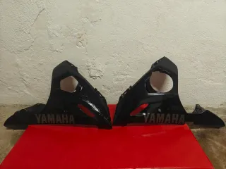 Par de carenados inferiores para Yamaha R6, Uno presenta desgaste, el otro perfecto - Color negro brillante. - Logo Yamaha en gris.