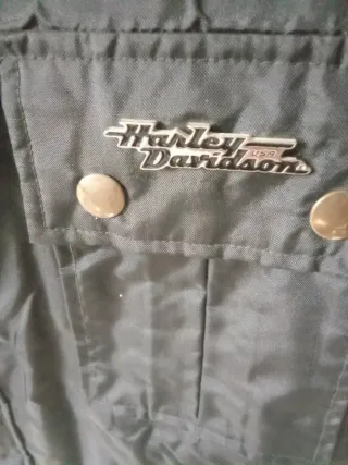 Chaqueta de moto con el icónico logo de Harley Davidson. - Logo metálico de Harley Davidson USA. - Cierre con botones dorados.