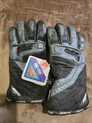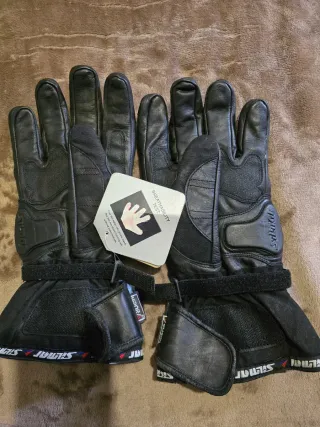 Guantes de invierno para moto, ideales para proteger tus manos del frío y la humedad. - Material exterior de cuero y textil. - Membrana HIPORA transpirable e impermeable. - Cierre de velcro doble en la muñeca. - Logo de la marca J-GAS en la muñeca y el puño. NUEVOS, NUNCA SE HAN USADO.
