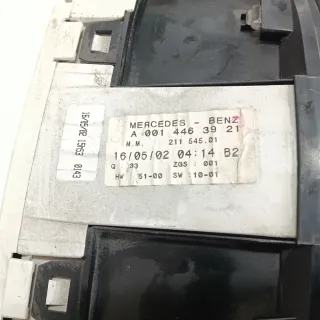 Cuadro de instrumentos para Mercedes Vito V 638. - Referencia Mercedes-Benz: A 001 446 39 21. - M.M.: 211 545.01. - Fecha de fabricación: 16/05/02. - Versión HW: 51-00. - Versión SW: 10-01.
