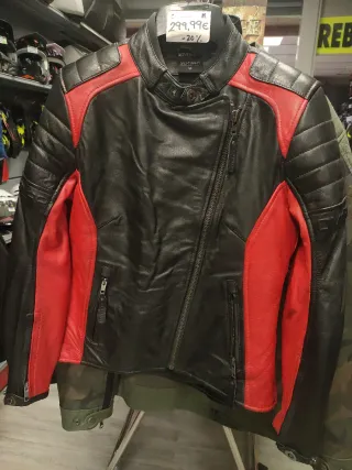Cazadora de piel negra y roja, ideal para moto.talla M - Diseño deportivo. - Cierre de cremallera. - Bolsillos con cremallera. - Forro térmico desmontable -Proteciones en hombros y espalda desmontables