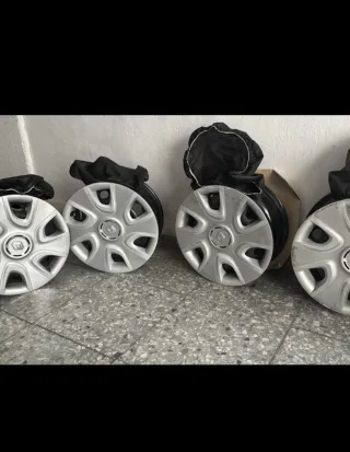 Juego de llantas de acero originales para Renault Clio 4, con sus tapacubos. - Llantas de acero. - Tapacubos originales. - Compatibles con Renault Clio 4. - 15 pulgadas 4 tornillos