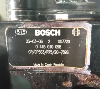 Bomba inyectora Bosch para Iveco Daily. - Modelo: 0 445 010 098 - Referencia Bosch: 007720 - Fabricada en República Checa - Código: CR/CP3S3/R75/20-789S