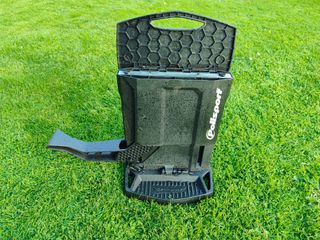 Polisport presenta éste novedoso caballete: elevador por palanca y plegable al mismo tiempo. - Estructura plegable para ahorrar espacio y asa superior para su fácil transporte. - Palanca elevadora con estructura y diseño sólido y rígido que soporta hasta un peso de 200 kilos. - Superficie con goma antideslizante que evitará los incómodos movimientos de tu moto una vez elevada. - Funcional bandeja para poder colocar tornillos y herramientas. - Altura en reposo: 310 mm. - Altura elevado: 440 mm. - Carga máxima 200 kilos. - Altura caballete plegado 530 mm de altura. - Peso del caballete: 5.5 Kilos.