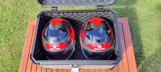 -Baúl de aluminio NUEVO A ESTRENAR para moto. -Puedes elegir en color plateado con tapa negra, o negro entero. -65L de capacidad. -Caben 2 cascos integrales CON INTERCOMUNICADOR EXTERIOR + 2 pares de guantes y todavia entra alguna cosa mas. -Trae dos llaves + forro interior con 2 bolsillos + la base de sujección universal para colocar sobre el soporte de tu moto -Te lo envío en un máximo de 24h