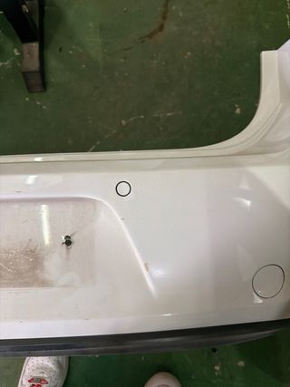 Paragolpes trasero para Volkswagen Golf 7, modelo 1.6 TDI. - Color blanco. - Incluye reflectantes rojos. - Dispone de sensores de aparcamiento originales. -No tiene ningún anclaje roto solamente desperfectos de arañazos.