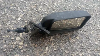 Espejo retrovisor exterior derecho para Renault 11. Se vende tal como se ve en las imágenes. - Carcasa de plástico negro. - Mecanismo de ajuste visible.