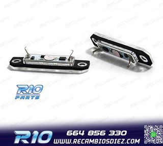 Soporte para la luz de matrícula de Opel Combo del año 2001. - Pieza de plástico negro. - Incluye dos luces con carcasa transparente. - Cables de conexión adjuntos.