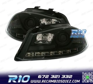 FAROS SEAT IBIZA CORDOBA 6L 02-08 LUZ DIURNA LED FONDO NEGRO