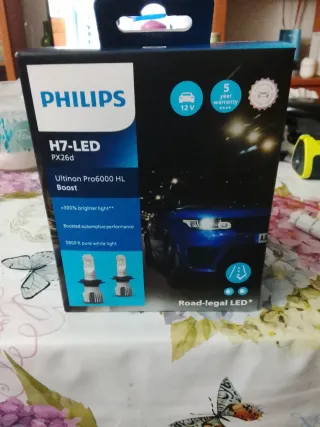 Juego de lámparas LED Philips H7 para coche. - Modelo: Ultinon Pro6000 HL Boost. - Tipo: H7-LED PX26d. - Voltaje: 12 V. - Garantía: 5 años. - Tipo de luz: LED legal para carretera. - Color de luz: Blanco puro.