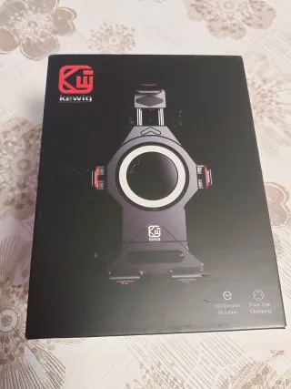 Soporte para móvil con carga rápida, diseñado para motos y bicicletas. Cuenta con un acabado en negro y detalles en rojo y naranja. NUEVO A ESTRENAR - Carga inalámbrica con luz LED verde. - Mecanismo de sujeción ajustable. - Base giratoria 360 grados.