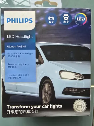 Bombillas LED para faros delanteros Philips Ultinon Pro3101. - Luz blanca hasta 6000 K. - Potente brillo. - Tecnología Lumileds LED. Nuevas en su caja sin abrir