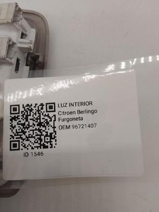 Referencia 96721407. CITROEN BERLINGO - 2 GENERACION 2PERIODO DE RESTYLING 2015 - 2022 - FURGONETA OTROS Año 2015 luz interior. Observaciones Luz interior recuperada revisada citroen berlingo. Código interno 1546.