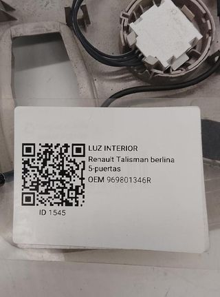 RENAULT TALISMAN - 1 GENERACION 2015 - 2020 - BERLINA 5-PUERTAS Año 2015 OTROS luz interior. Referencia 969801346R. Observaciones Luz interior recuperado revisado renault talisman. Código interno 1545.