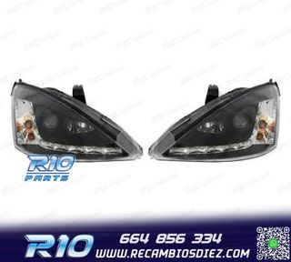 FAROS PARA FORD FOCUS 01-04 LUZ DIURNA LED FONDO NEGRO H1-H1