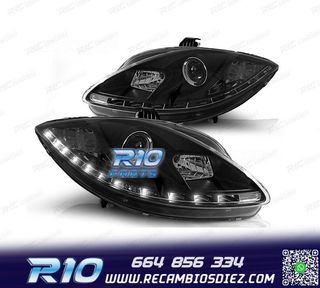 FAROS SEAT LEON ALTEA TOLEDO 04-09 LUZ DIURNA LED FONDO NEGR