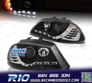 FAROS SEAT IBIZA CORDOBA 6L 02-08 LUZ DIURNA LED FONDO NEGRO