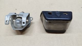 Luz de matricula Renault 4L . Desperfectos en tulipa de plástico (agujero de tornillo y raja) 10€.